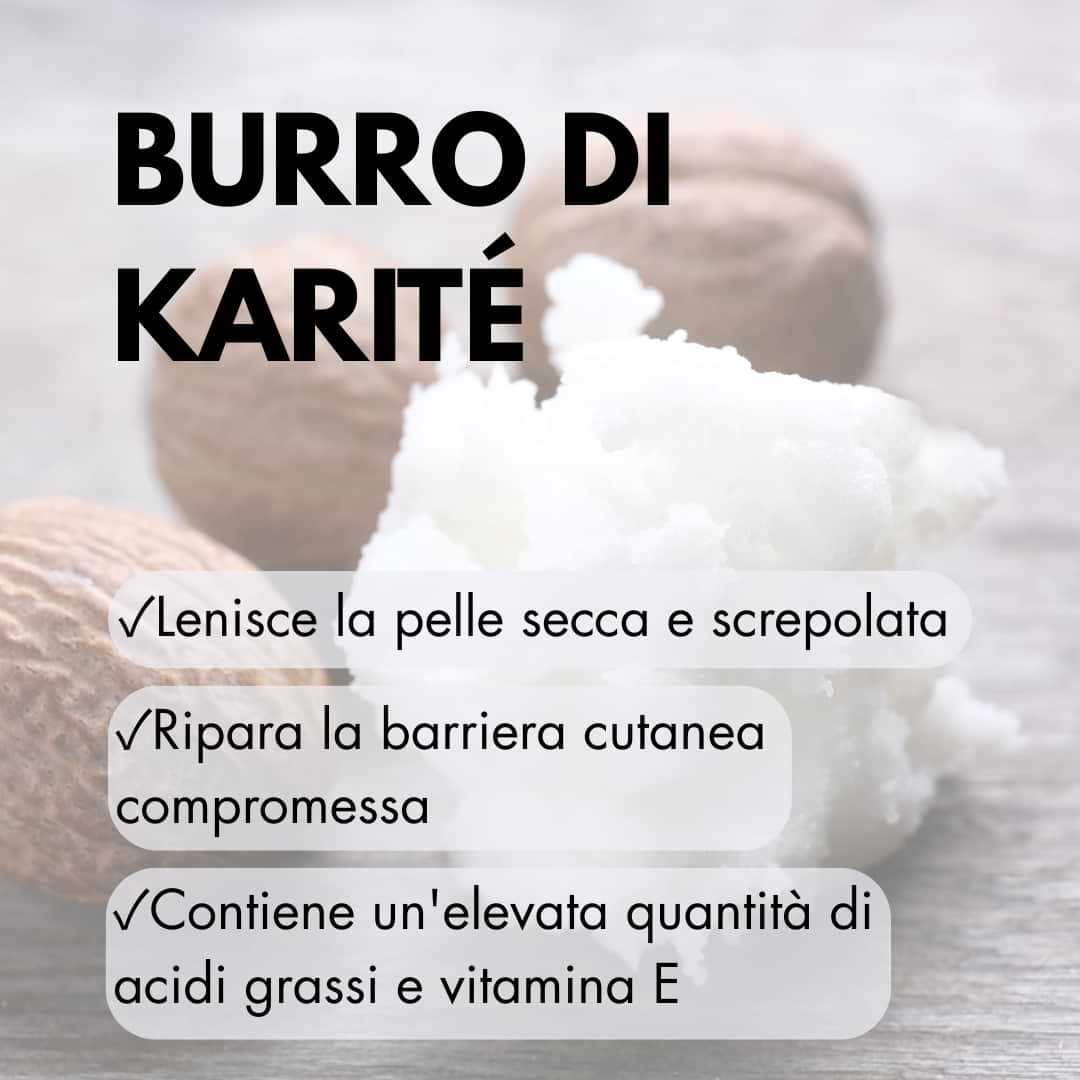Il nostro burro contiene burro di karité (derivato dal seme della noce di karité) ed essenza di cocco. Sebbene le allergie al karité siano rare, alcune persone allergiche alla frutta a guscio (come mandorle, anacardi o noci) potrebbero avere una reazione anche al karité. Il cocco, pur non essendo una noce, può comunque causare reazioni allergiche in chi è sensibile alla frutta a guscio