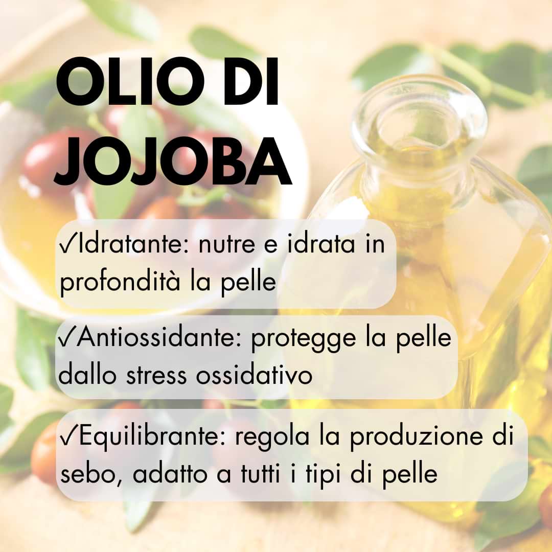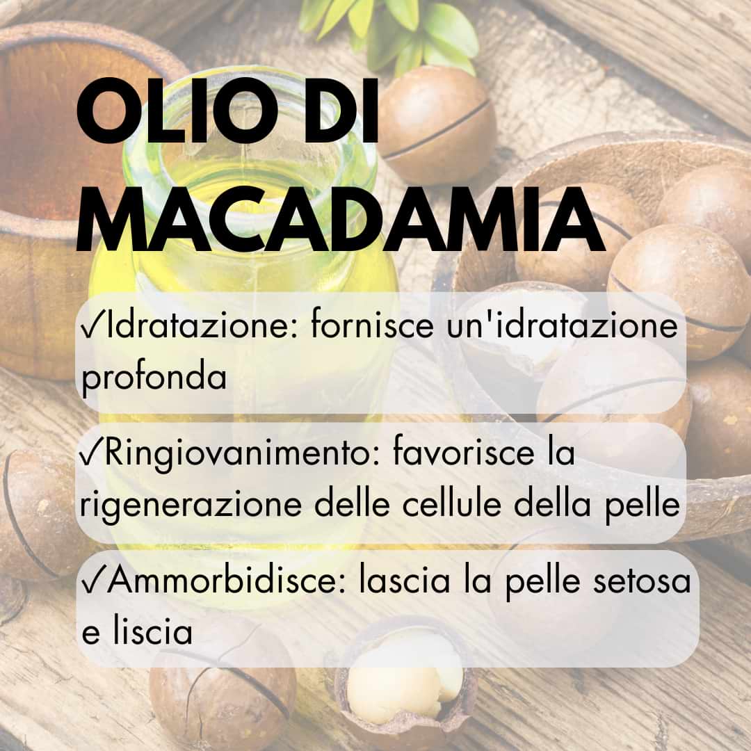 Burro di Karité, Olio di Vinaccioli, Olio di Jojoba, Olio di Mandorle Dolci, Olio di Cocco, Olio di Macadamia, Cera d’Api, Vitamina E, Ceramide, Bisabololo.